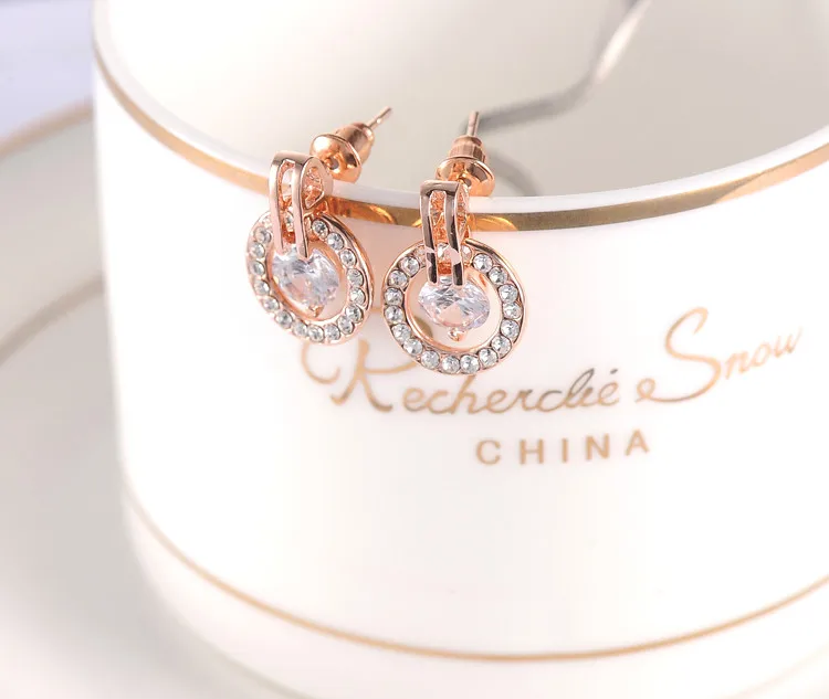 LZESHINE New Big Sale Wedding Jewelry Sets for Women Rose Gold Color Necklace and Earring Set Bijouterie Aretes ST0017-A