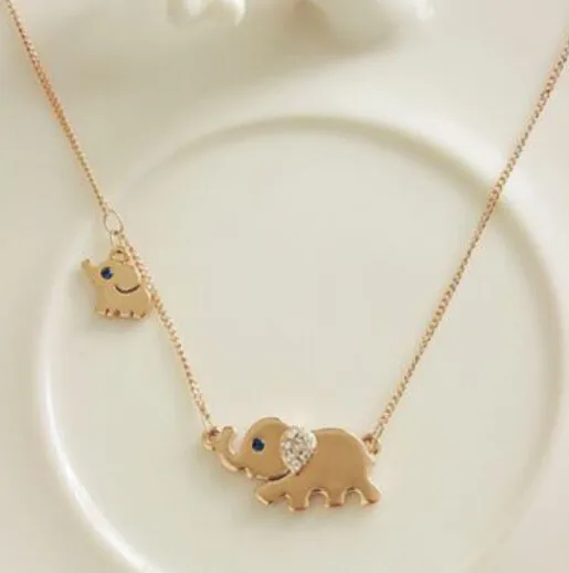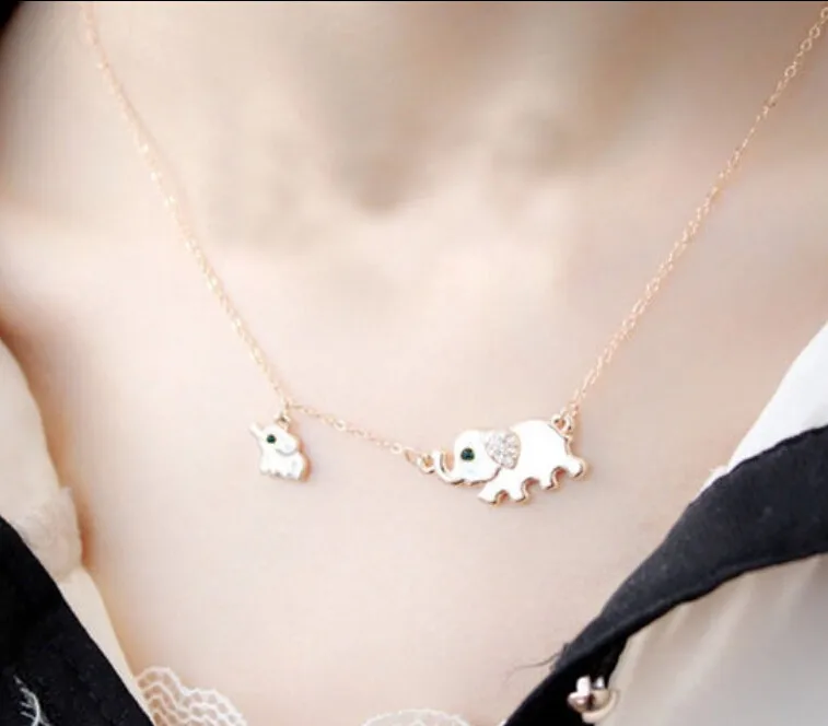Cute Elephant Family Stroll Design Fashion Women Charming Crystal Chain Necklace Chocker necklace Free shipping
