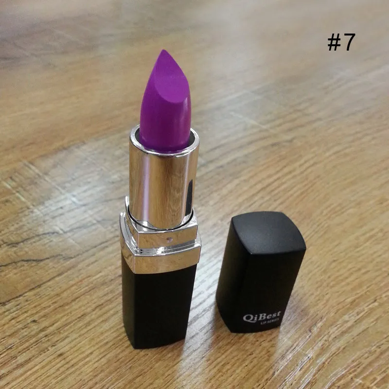 2015 Luxury Qibest 12 Colors Lipstick Vampire Grape Purple Dark Black Lipstick Vampire Style Matte Lipstick Masquerade Comestic