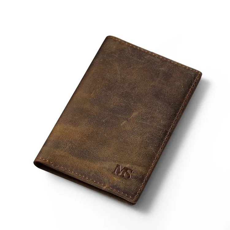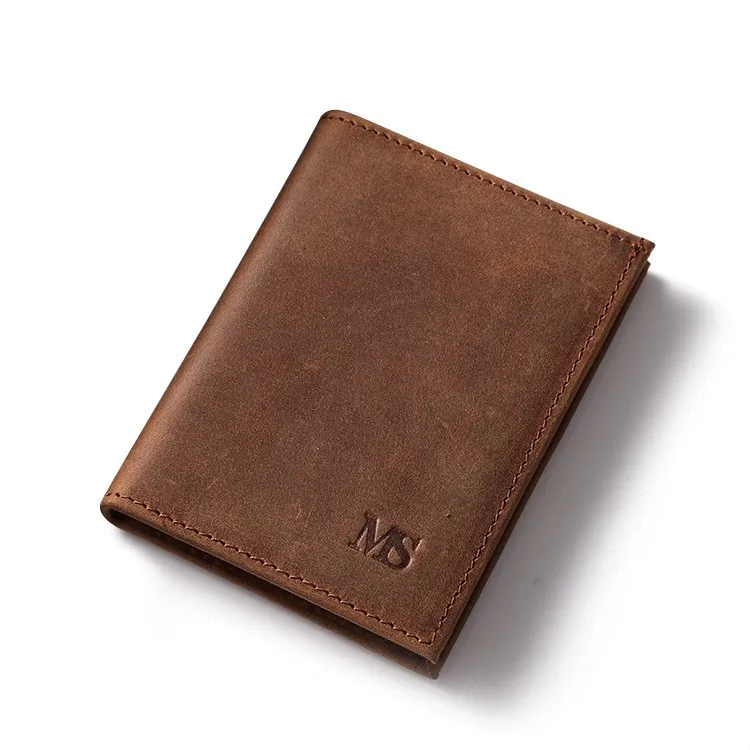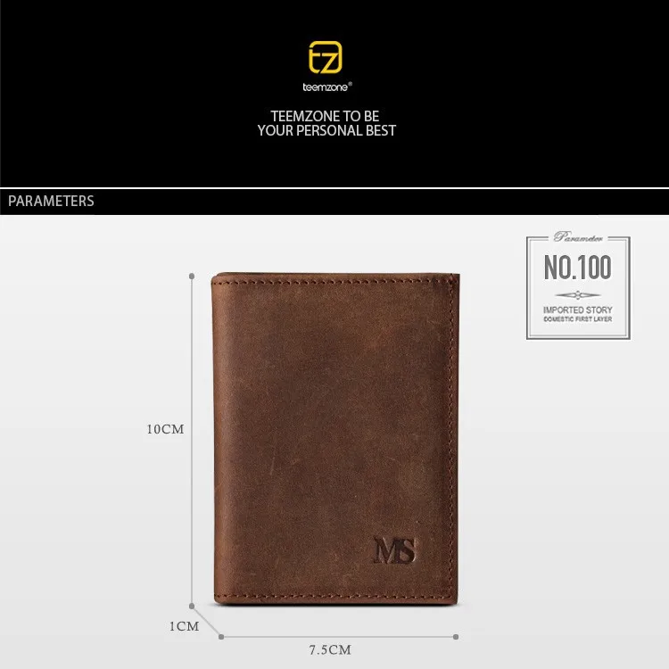 MS Hot Men Crazy Horse Genuine Leather Slim Wallet Business Casual Credit Card ID Holder Money Card Holder Purse Brown K100