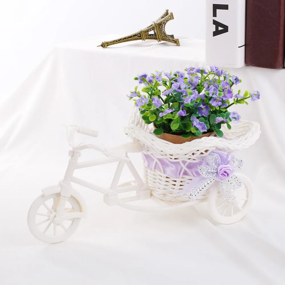 2017 Hot Sale New Plastic White Tricycle Bike Design Flower Basket Container For Flower Plant Home Weddding Decoration