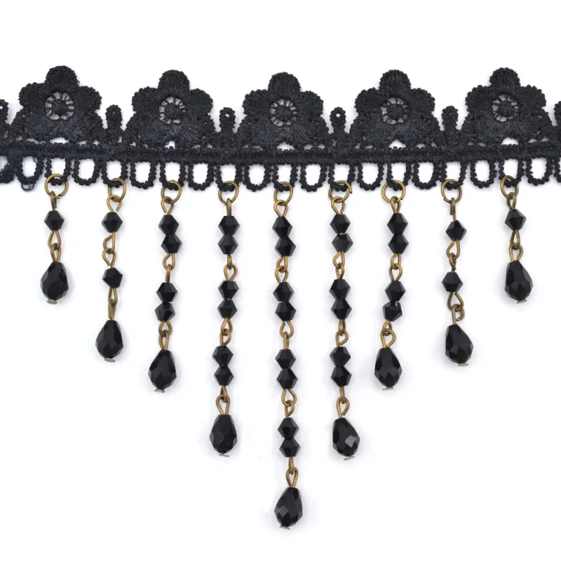 Gothic Victorian Steampunk Style Retro Hollow Flower Crystal Tassel Pendant Women Black Lace Choker Collar Necklace