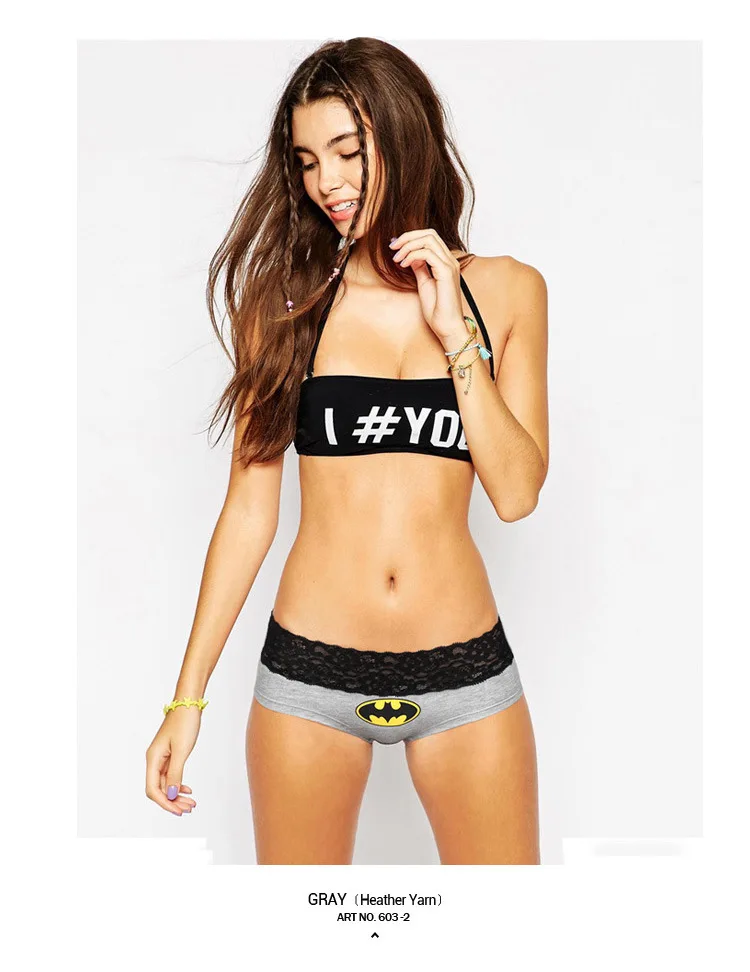 PINK HERO Underwear Wom Brand New Classical Fashion Cartoon Printed Cotton Women Fade Lace Triangle Underwear Sexy Panties
