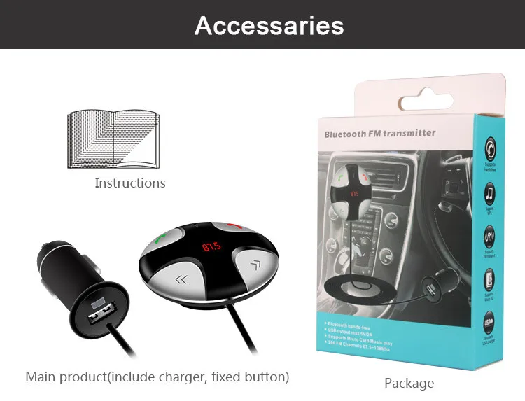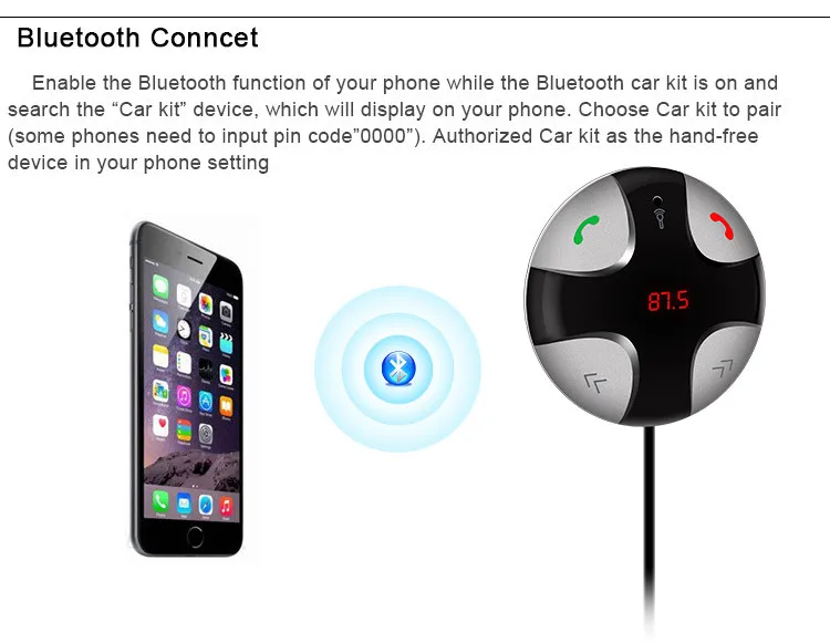 Car Kit MP3 Player Wireless Bluetooth FM Transmitter USB Support SD Tf Card LCD Display USB Car Charger For iPhone And Android