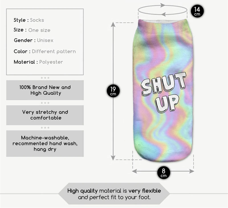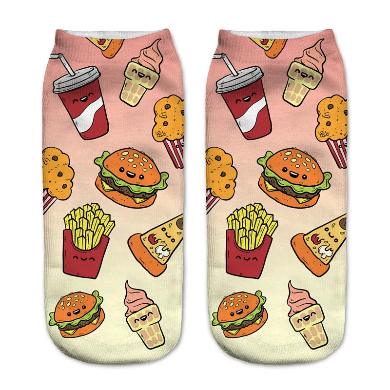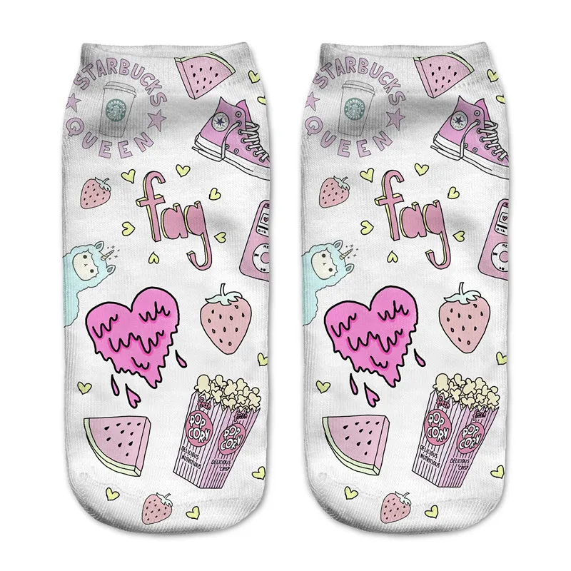 Zohra Neon Socks 3D Printing Female Socks Women Low Cut Ankle Socks Calcetines Mujer Casual Hosiery Printed Sock