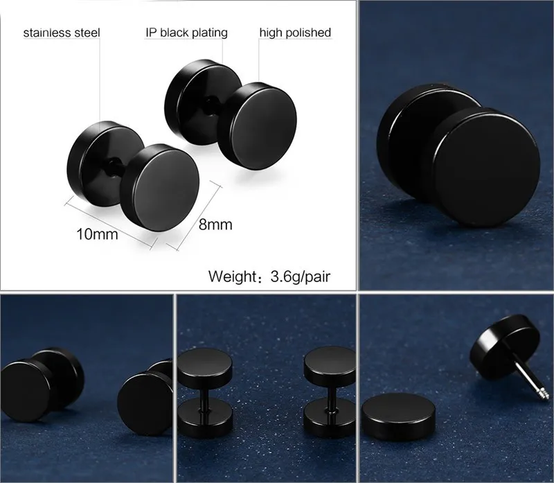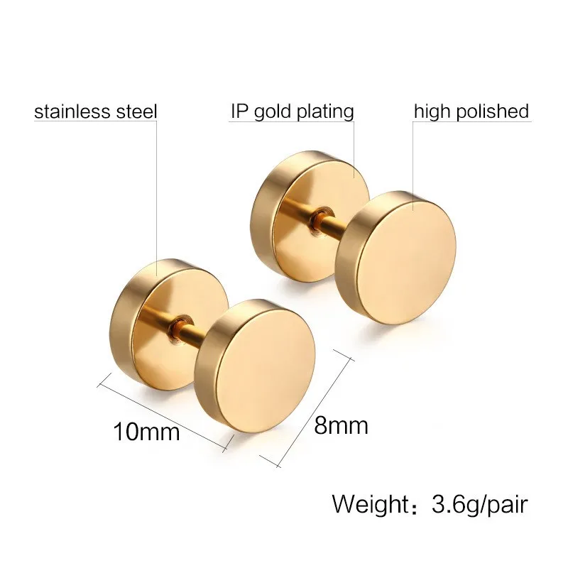 316L Stainless Steel Earrings Double Sided Round Bolt Stud Earrings For Men Women Punk Gothic Barbell Black Earrings Female Male