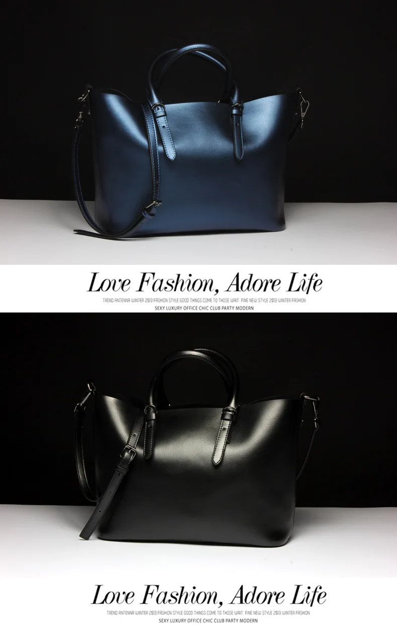 Luxury Design Women's Genuine Leather Casual Tote Purse Fashion Shoulder Handbag Ladies Blue Large Capacity Shopping Bag Bolsos