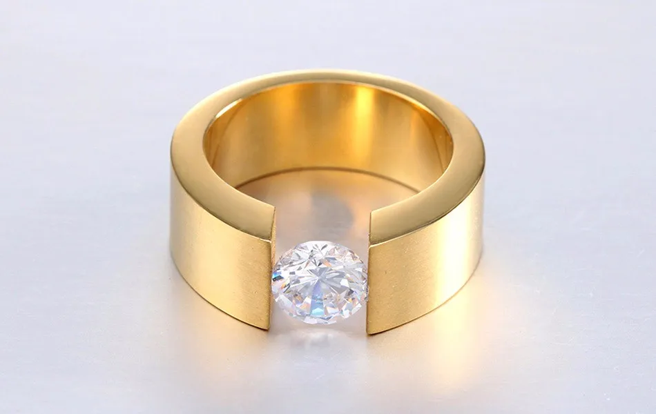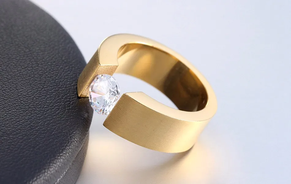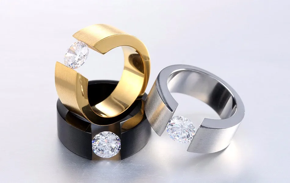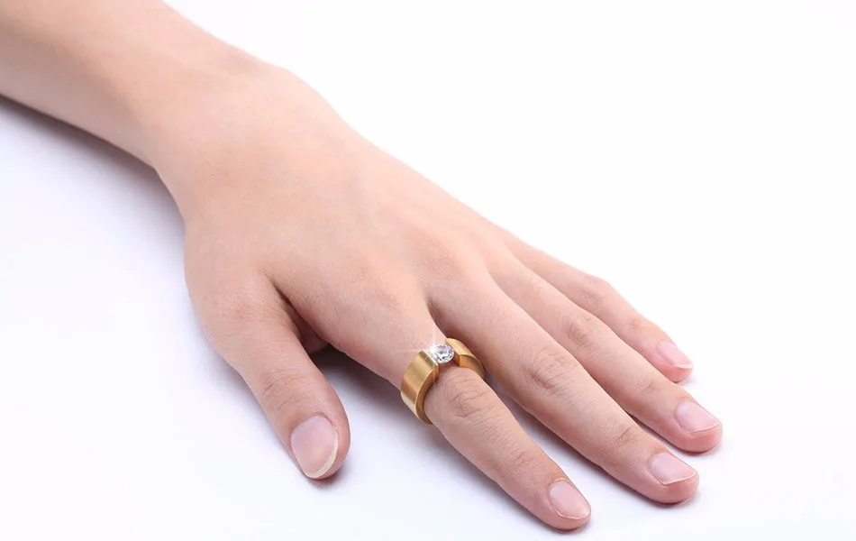 Effie Queen Men Women Wedding Band Titanium Steel Rings Bague Homme Wiredrawing Fashion Stainless Steel Cubic Zircon Ring IR23