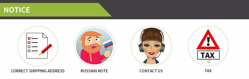 2.If you from Russian Federation,please leave FULL NAME(contain three parts). FULL ADRESS including your STATE and your CITY when you make the order, otherwise we can not be responsible for your parcel if it can't delivered. Thanks for your understand!
