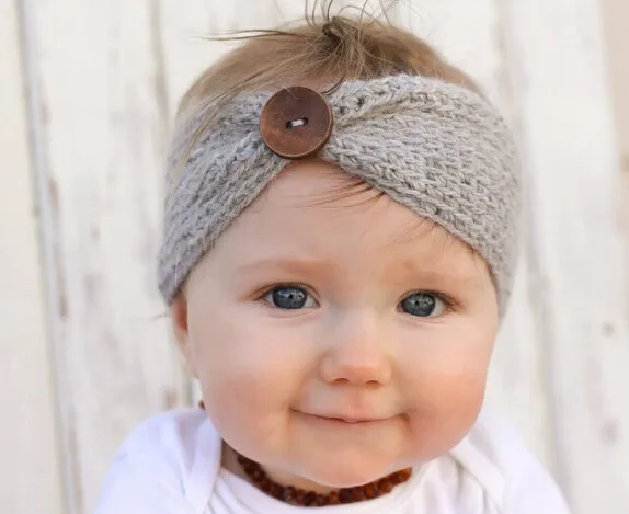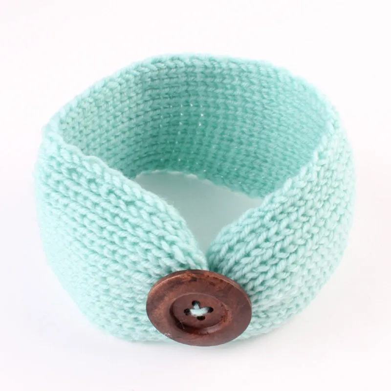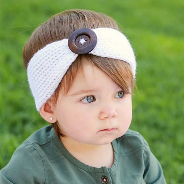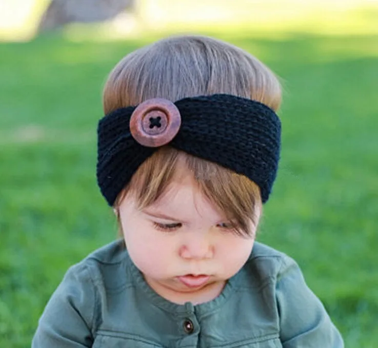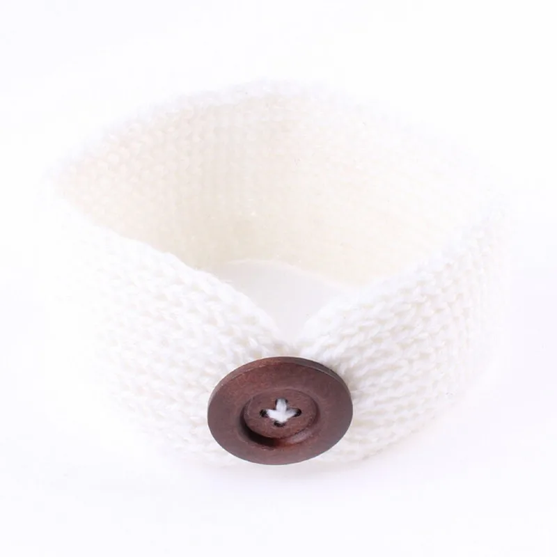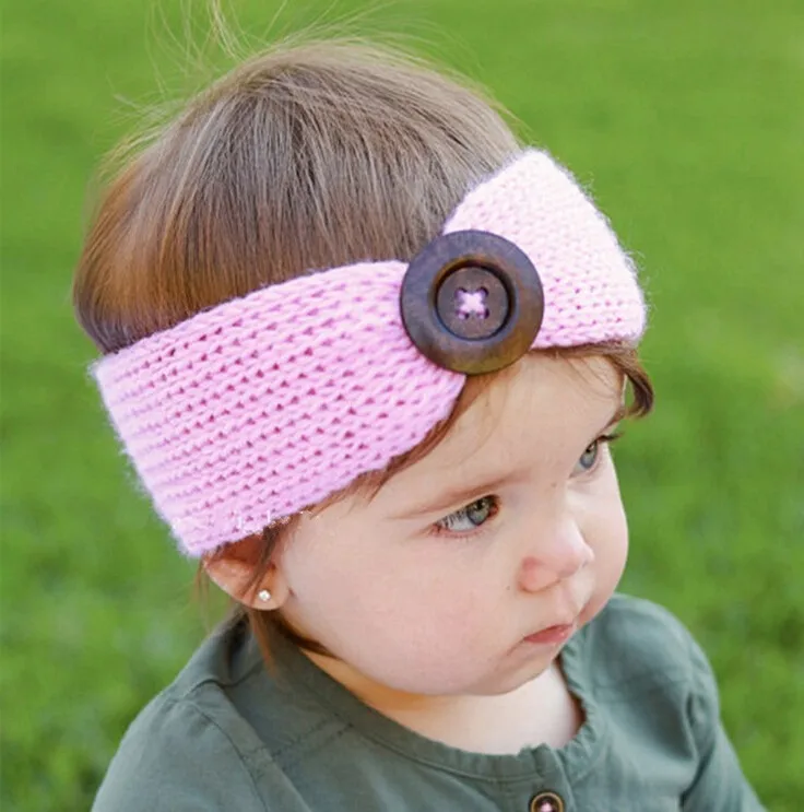 Newborn Turban Ear Winter Warm Button Headband Crochet Knitted Headwear Kids Hairband Headwrap Hair Band Accessories