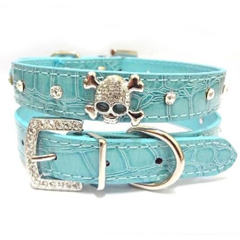 PU Leather Dog Collar Rhinestone Puppy Buckle Puppy Pet Collars Perro Led Small Dog Collars With Skull Pet Accessories 4 Colors